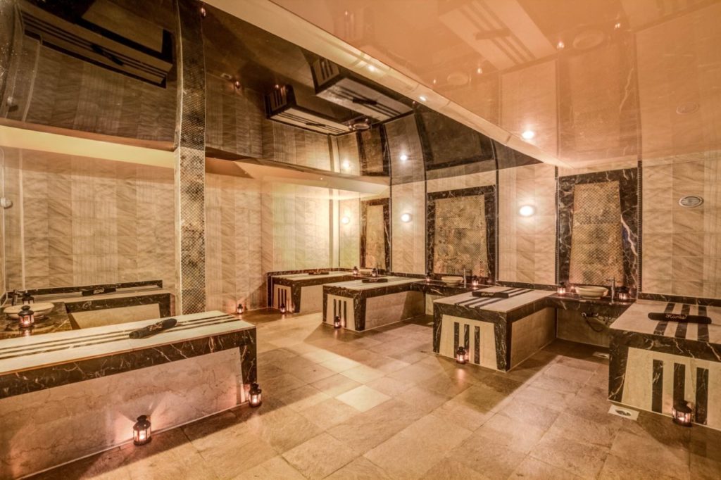 Hammam umfasst eine Reihe von Behandlungen: Sauna, Peeling, Massage. Die Temperatur im türkischen Bad ist nicht sehr hoch — normalerweise nicht mehr als 80 Grad und die Wärme wird durch reichlich feuchten Dampf auf den Körper übertragen. Sie entspannen sich auf einer heißen Marmorplatte. Ihr Körper wird weich, geschmeidig und hautelastisch. Du fühlst wahres Vergnügen. Dann Peeling-Verfahren, wodurch keratinisierte Hautschuppen effektiv entfernt werden. Und schließlich die Schaummassage — der Höhepunkt des Vergnügens.