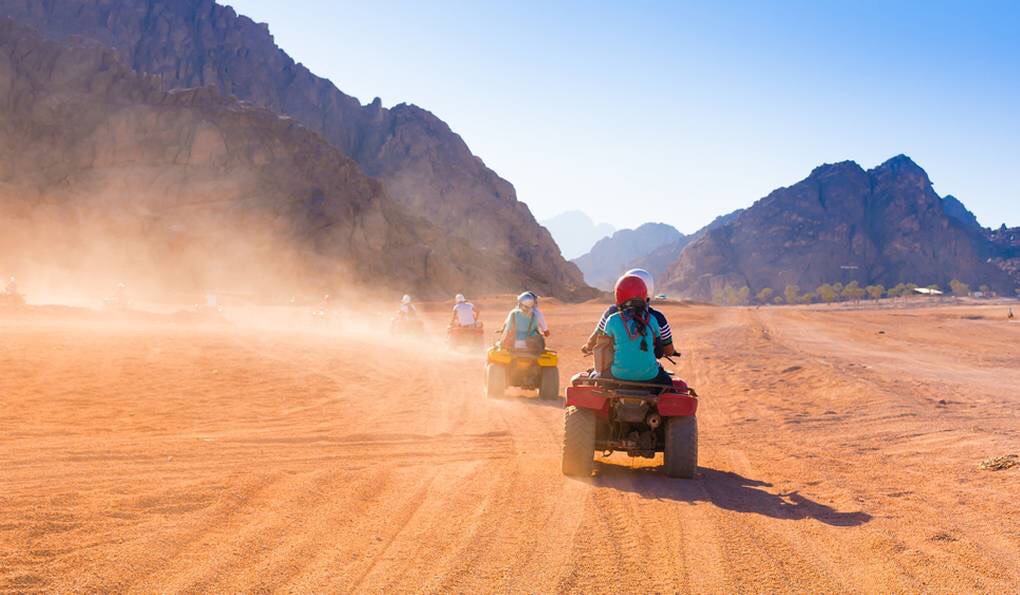 Dieses aufregende Abenteuer beginnt mit einer Jeepreise in die Wüste. Danach geht es weiter mit Quad-Bikes, bei denen Sie ein wahres Trugbild sehen und von den Sanddünen aus fahren können. Ahead ist ein unvergessliches Treffen mit den Beduinen, die den Reisenden die Möglichkeit bieten, duftenden Tee, Quad, Buggy (Sportwagen) und Kamele auszuruhen und zu probieren. Das reichhaltige Programm beinhaltet auch einen Besuch im Mini-Zoo, Terrarium.