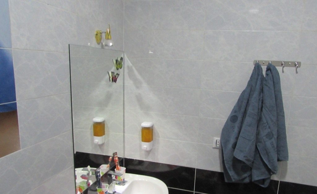 Im Badezimmer wird den Gästen ein komplettes Set an Badezubehör (Zahnbürsten, Zahnpasta, Duschhaube, Wattestäbchen, Feuchttücher, Shampoo, Haarspülung, Seife usw.), Pareo-Handtücher zur Verfügung gestellt.