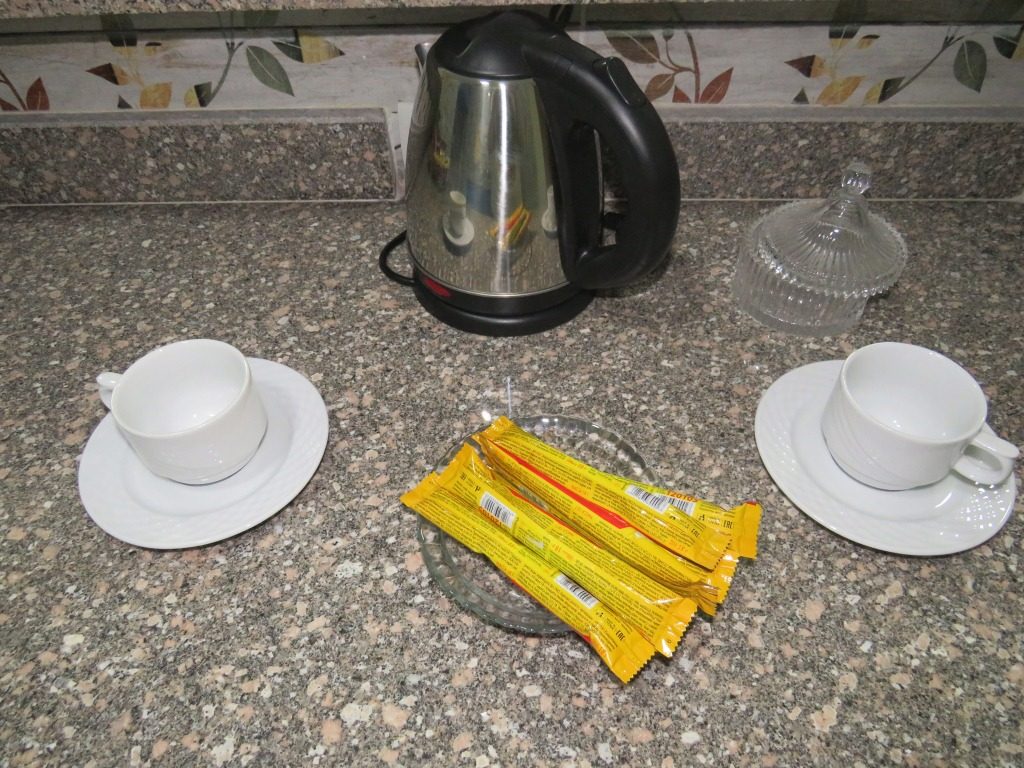 Kostenlose Minibar (mehrere Arten von ausgezeichneten Tee, Kaffee, Milch für Kaffee, Kaffee mit Milch, heiße Schokolade und andere heiße Getränke, Zucker, Zuckeraustauschstoff, Marmelade, Chips, Cracker, Croissants, Schokolade, Kekse usw.). Auch in der Minibar ist Trinkwasser, Coca-Cola, Sprite.