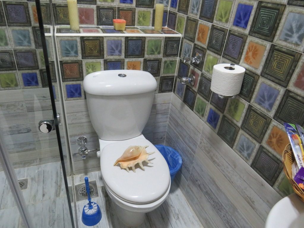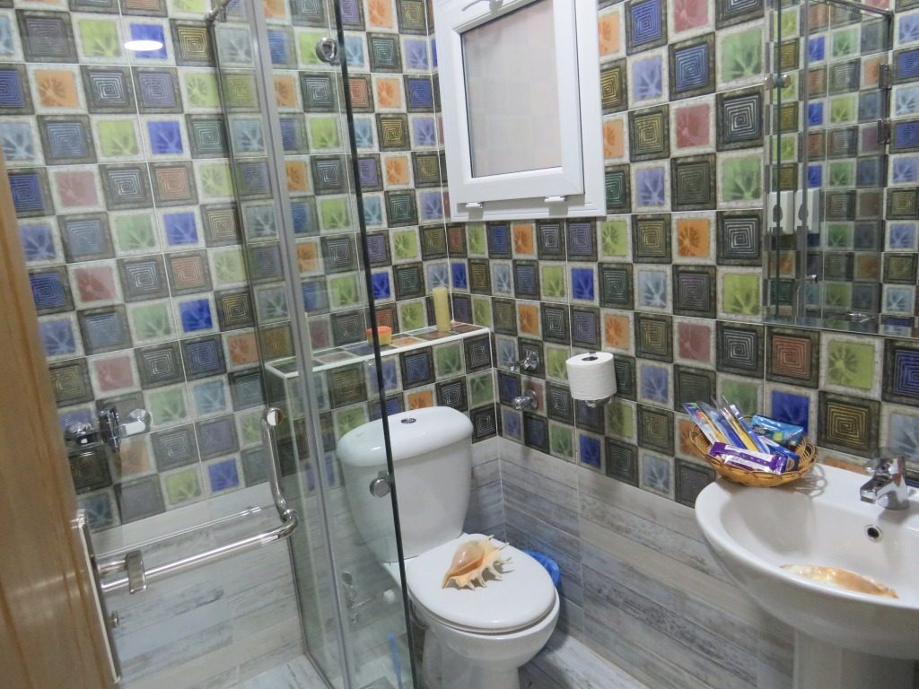 Im Badezimmer wird den Gästen ein komplettes Set an Badezubehör (Zahnbürsten, Zahnpasta, Duschhaube, Wattestäbchen, Feuchttücher, Shampoo, Haarspülung, Seife usw.), Pareo-Handtücher zur Verfügung gestellt.